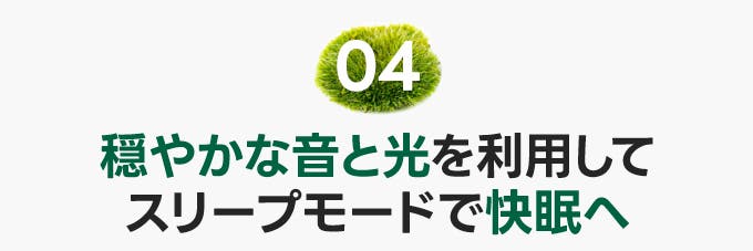 - 自然のグリーンと穏やかな音・光で、最適な睡眠環境をサポート!