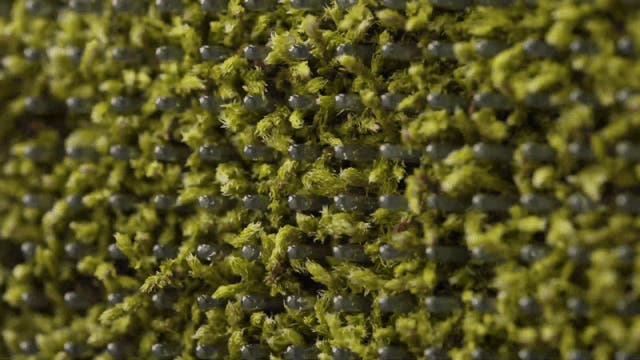 ① 苔が落ちないように、まず上部を軽く引いて外し、その後下部を引き抜いてフレームを丁寧に取り外してください。 ② 取り付けられている苔フィルターを外します。 ③ 新しい苔フィルターをしっかりと固定してください。 ④ 下側から順に上部までフレームを再度取り付けます。 ※苔パネルは、苔が回復できないほど乾燥している場合や、茶色に変色した場合のみ交換してください。