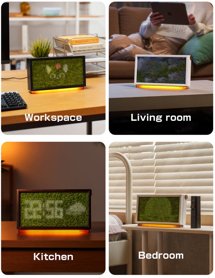 自然の風景、時計機能、ナチュラルアラーム、オーディオビジュアライザー、スリープモードなど、多彩なコンテンツ切り替え機能とカスタマイズデザインにより、Moss Echoを自分の好みに合わせて設定し、暮らしの空間をより豊かに演出することができます。