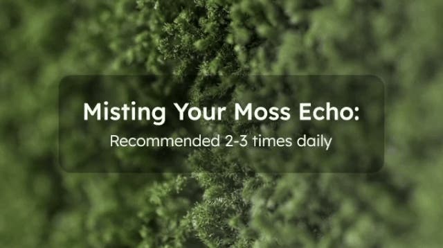 A: Moss Echoの苔は特別なお手入れを必要としません。Light Poleテクノロジーが生育に必要な光を自動的に供給し、1日1回ほどミストスプレーで軽く水を吹きかけるだけで十分です。水以外の液体(栄養剤など)は使用しないでください。