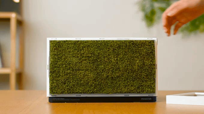 A: Moss Echoに使用されている苔は、自然の状態でも約2年以上の寿命があります。ただし、生きた植物のため時間の経過とともに色が徐々に変化する場合があります。これは自然な現象であり、Moss Echoでは交換用苔フィルターを提供しているため、いつでも簡単に交換が可能です。