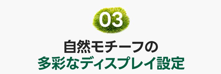 フェードイン機能により、日の出や波の音などお好みのディスプレイコンテンツを5分〜60分の間で設定できます。