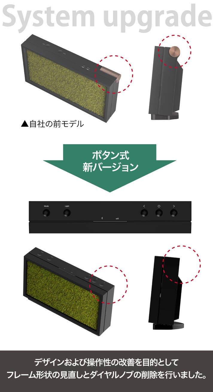この機能により、オフィス、リビング、寝室、キッチンなど、どんなインテリアにも調和するように、Moss Echoの雰囲気を手軽にカスタマイズできます。
