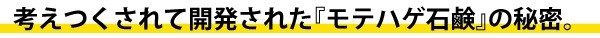そうですよね、まだ信じられないかもしれません。でもご安心ください。本プロジェクトのテーマは『はげまされてモテハゲになる』。これまで薄毛に悩んでいたあなたが、無理なく『モテハゲ』になるために必要な商品・サービスを用意しています。そして、わたしたちはあなたを勇気づけ、ハゲまし、背中をそっとあと押しいたします。その、第一弾がこの『モテハゲ石鹸』なのです。