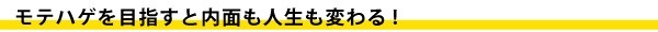 もしも、あなたが薄毛で悩んでいたとしたら、『モテハゲ』になることで、人生の景色が変わります。これまでの悩みがどうでもよくなり、ハゲがあなたの弱みから一転して強みへと変わり、自信と希望に満ちた楽しい毎日を送る生活が待っています。あなたは、『モテハゲ』になることで必ず幸せになれると、わたしは断言できます。