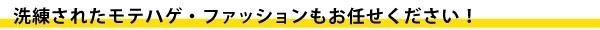 モテハゲグッズ一式に加えて、『モテハゲアカデミーの基礎講座(30000円相当)』と、薄毛男性がビジネスシーンとカジュアルともに格好良いファッションを身にまとうための『モテハゲ・ファッションコーディネート講座(30,000円相当)』をお付けした初級セットです。これを受けると、「あれ?何かこれまでと印象がガラッと変わったね!」「かっこよくなったね!」と呼ばれるまさに『モテハゲ』の楽しさを味わっていただけること間違いありません。
