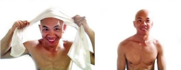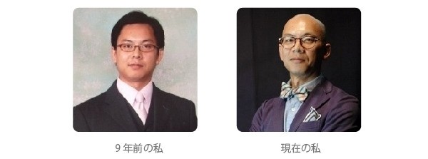 実際、私自身の左の9年前の写真と比較しても、45歳となってスキンヘッドになった今の方が痩せていて若く見えると思いますし、現実に『今の方がかっこいい』ともよく言われます。事実、私を見て45歳だと当てられる人は皆無です。