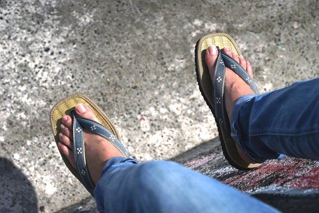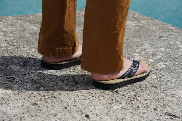 鼻緒に畳縁を使用しているので、肌あたりが少しハードです。甲高の人はワンサイズ大きめのものを選んでいただければと思います。