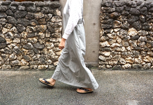 ビニールのサンダルとは違い、雪駄のように、かかとが出るくらいのサイズでの履きこなしがおすすめです。