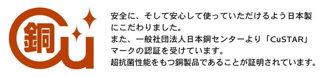- 超抗菌パワーのある製品として、日本銅センター認証済。信頼のおける日本製