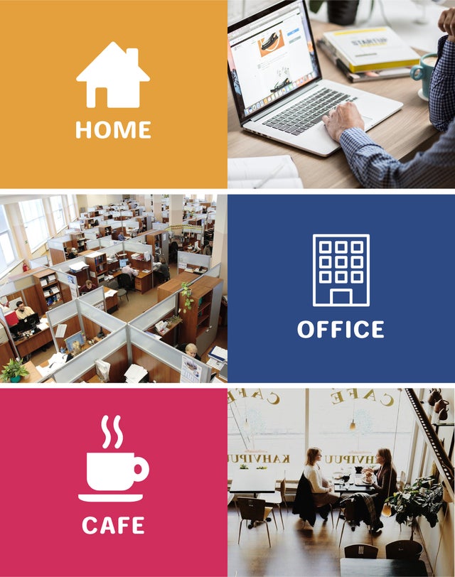 オフィス、カフェ、自宅等、場所を選ばず、どこでも使えます。