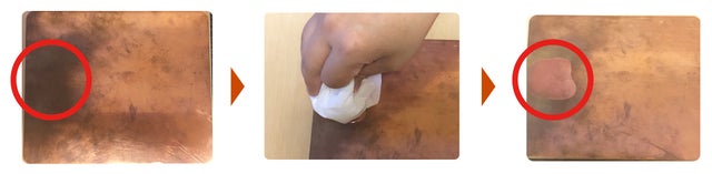 ◆お酢をつけたやわらかい布やスポンジで銅マウスパッドを軽くこすると