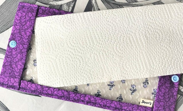 内側はエアパッキンやキッチンペーパーをはさみこめる構造に。それらを日々お取替えいただくことで、マスクを衛生的に保てます。