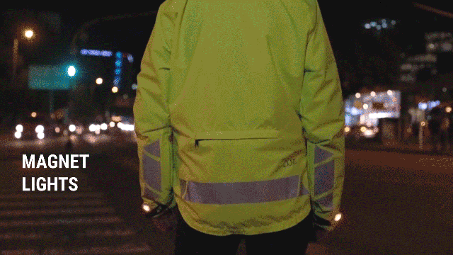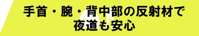 手首・腕・背中の3箇所に反射材が付いているので、暗い時間帯でもしっかり目立ちます。