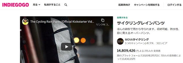アメリカのクラウドファンディングサイトKickstarterとindiegogoで総額約2,865万円、1494人から支援を集めたMOVAパンツ!