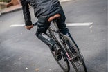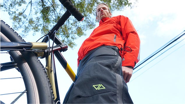 TheCyclingRainPantsは両脚の外側にダブルジッパーがついており、腰部分までパンツが開きます。