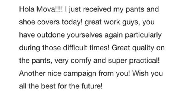このMOVAパンツ&ジャケットは私たちの5番目のプロジェクトであり、この革新的な製品を皆さまにお届けできることを大変うれしく思います。