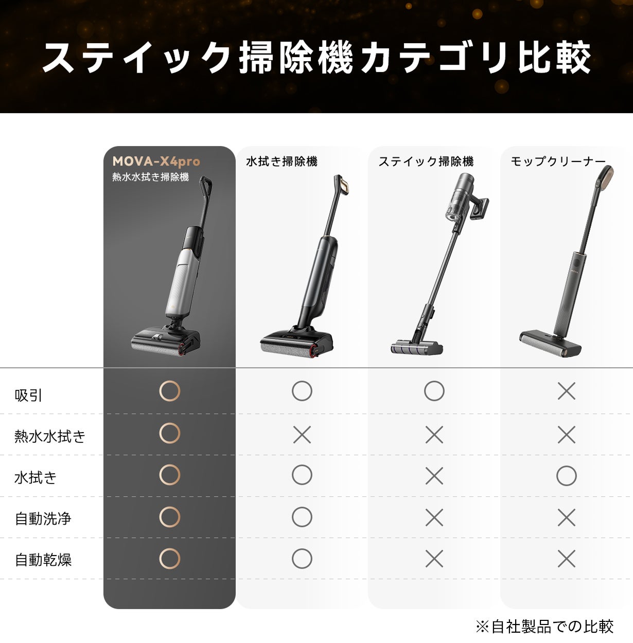 MOVA X4 Proは、家庭の清潔をより効率的で快適にするために開発されました。従来の掃除機やモップでは除去が難しかった頑固な汚れや見えない微細なゴミの徹底除去を実現するため、私たちはこの革新的な熱水洗浄機を生み出しました。