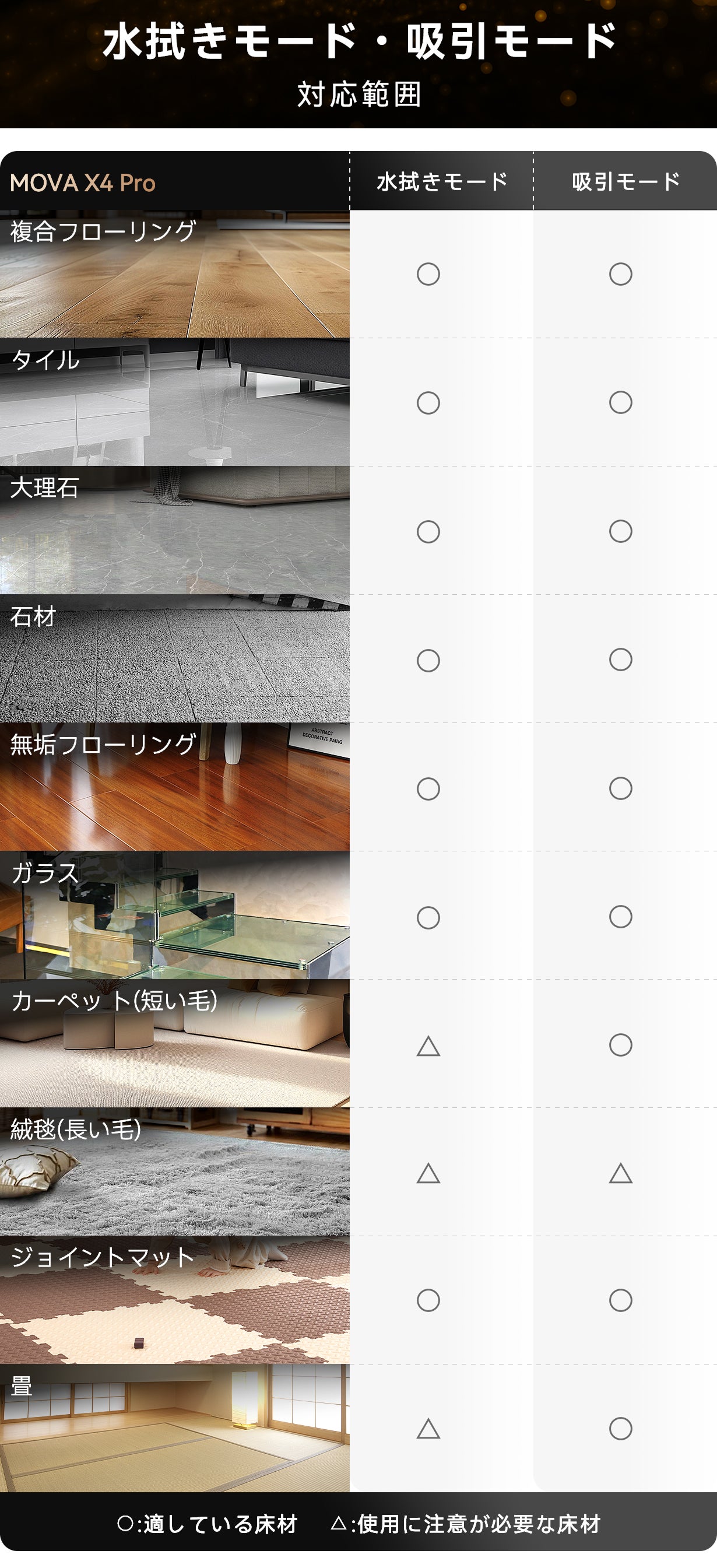 ユーザーの声に真摯に耳を傾け、ユーザー中心の最新技術を組み合わせることで、MOVA X4 Proは誕生しました。清掃体験を一新し、ご家族の生活空間に革新的な快適さをもたらすことを目指しています。私たちは、MOVA X4 Proを通じて、テクノロジーの力でよりスマートで豊かな未来の生活を提供したいと考えています。