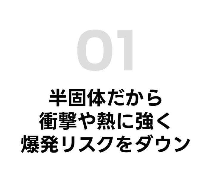 - 近年増え続けるモバイルバッテリーの発火事故を極限まで防ぐため、半固体バッテリーを開発。