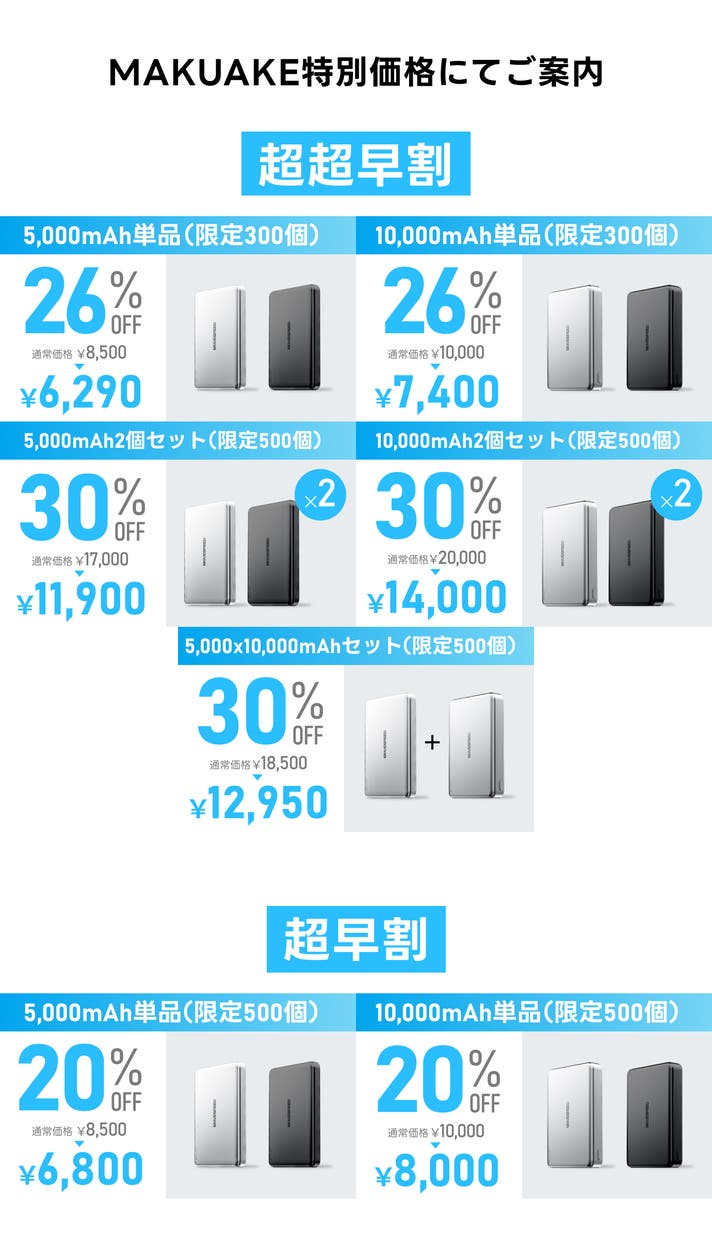 超超早割 5000mAh×10000mAh半固体モバイルバッテリーセット