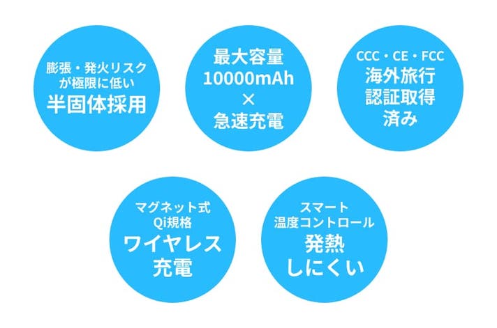 ※PSE、CCC、CE、FCC認証を取得しており、国内及び国外への機内持ち込みが可能です。