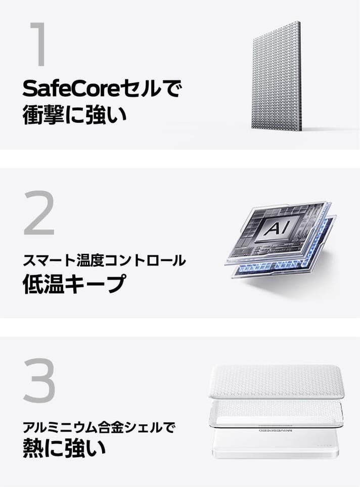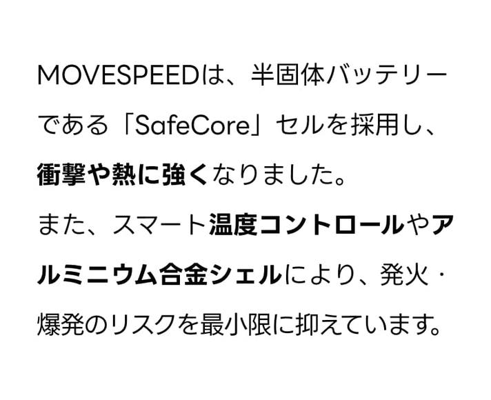 - 先進技術の半固体バッテリー「SafeCore」を採用し、爆発リスクを大幅ダウン。