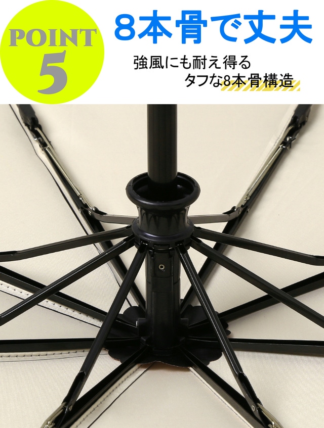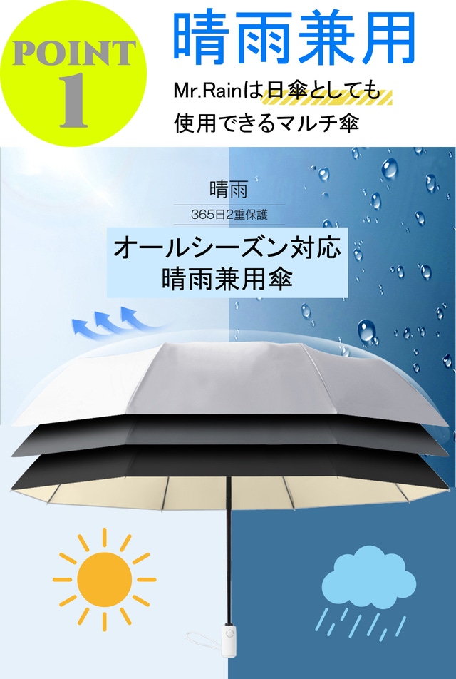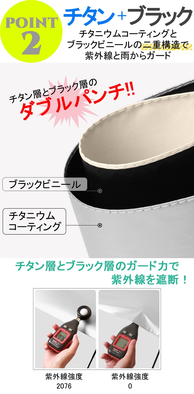 - チタンコーティング&ブラックビニール生地で雨にも日差しにも負けない。晴雨兼用傘。
