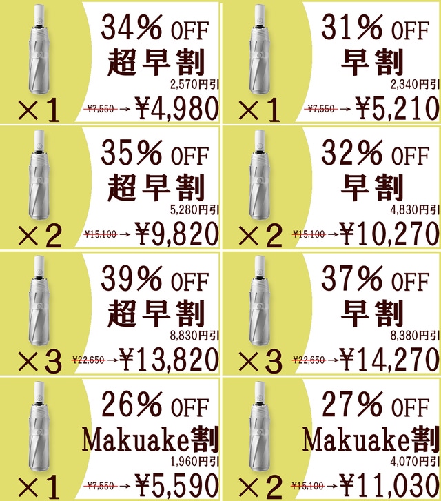 プロジェクトに関する情報 ・プロジェクトの属性:輸入商品(日本仕様の商品を販売業者として、皆様にお届けします。)、輸入代理 ・販売店によるサポート:日本語のカスタマー対応、メーカー保証:商品受け取り日から3か月(初期不良のみ対象) ・実行者:日本 ・企画者:中国(メーカーの所在地) ・製造者:中国(工場) ーーーーーーーーーーーーーーーーーーー ※並行輸入品が発生する可能性があります。個人輸入及び販路によっては防ぐことができない可能性がある点、ご了承願います。 ※使用感などに関しては、感じ方に個人差が予想される製品でございます。そのため、使用感等に関する返品・返金はお受けいたしかねます。 ※初期不良以外に関する返品・返金はお受けいたしかねます。 ※デザイン・カラー・素材などの仕様が一部変更になる可能性がございます。 ※モニター環境によって、画像の色が実物と異なって見える場合がございます。 ※応援購入の数が想定を上回った場合、製造工程上の都合等により出荷時期が遅れる場合がございます。 ※想定を上回る皆様から応援購入を頂き、量産体制を更に充実させることができた場合、一般販売価格が予定価格を下回る可能性がございます。 Makuakeの性質上、以上の注意点につきましてあらかじめご理解とご了承いただいた上で応援購入して頂きますよう、よろしくお願い申し上げます。 最後に、本製品を手に取った皆様に喜んでもうえるよう、チームメンバー一同心を込めて対応していきますので、 応援よろしくお願い致します。 ※並行輸入品は正規代理店による製品保証を受けることができません。 また、正規代理店を通じて購入することで、日本国内での流通に必要な各種認証の取得や、関税の適切な処理が担保されます。 ※本文中に記載させていただいたスケジュールは、あくまでプロジェクト公開時点の予定です。応援購入の性質上、配送遅延のおそれがございます。 ※原則として、配送遅延に伴う応援購入のキャンセルはできませんが、リターン配送予定月から3ヵ月を超えた場合には、希望者に限りキャンセルにて対応させていただきます。