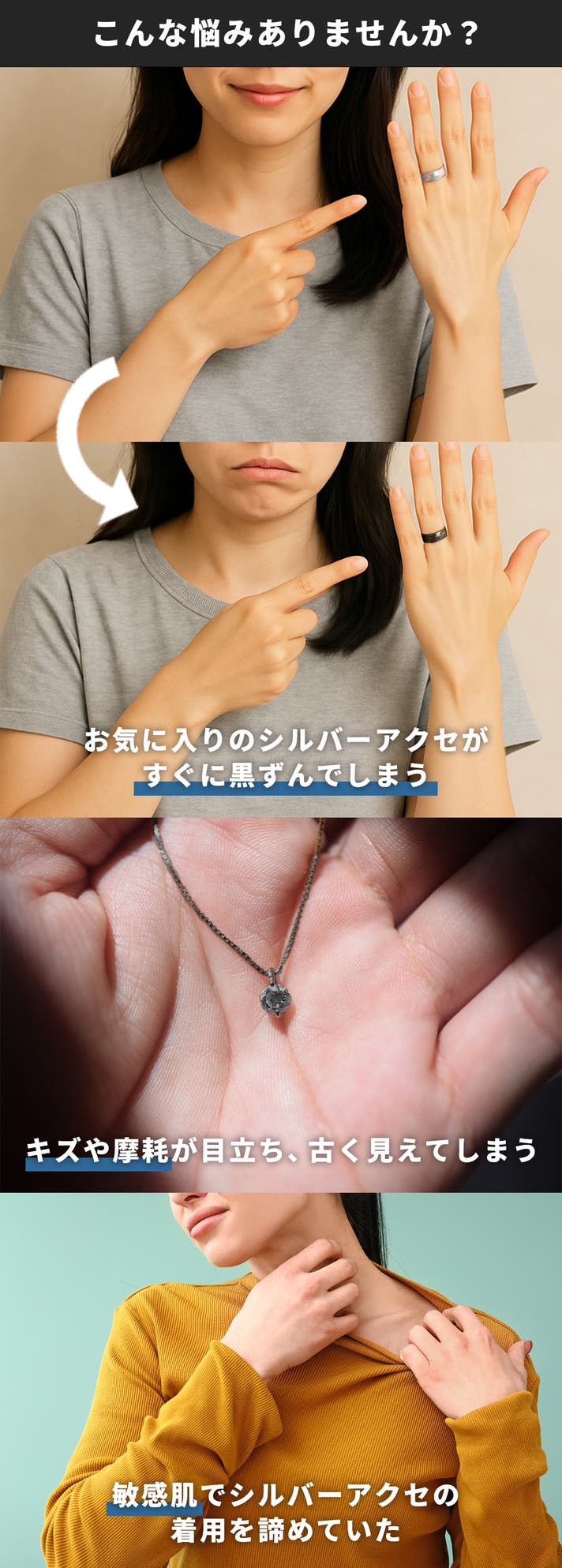 - 【シルバーアクセの常識を覆す】特殊コーティングで変色劣化しにくいシルバーアクセサリーを実現。