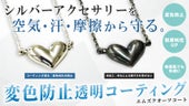 アクセサリー業界でシルバーの変色は「仕方がない」とされてきましたが、この度当社の長年の研究により従来のものをはるかに超える透明コーティングを実現。
