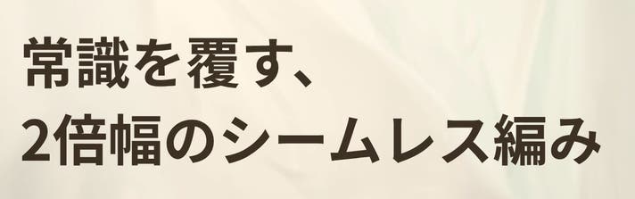 しかし、私たちはその常識をあえて超え、約2倍の幅で、ゆっくりと時間をかけてシームレスに編み上げる独自の技法を採用しました。
