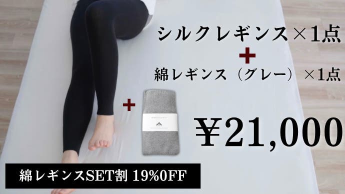 【綿レギンスSET割】シルクレギンス1点+綿レギンス(グレー)1点 ¥21,000