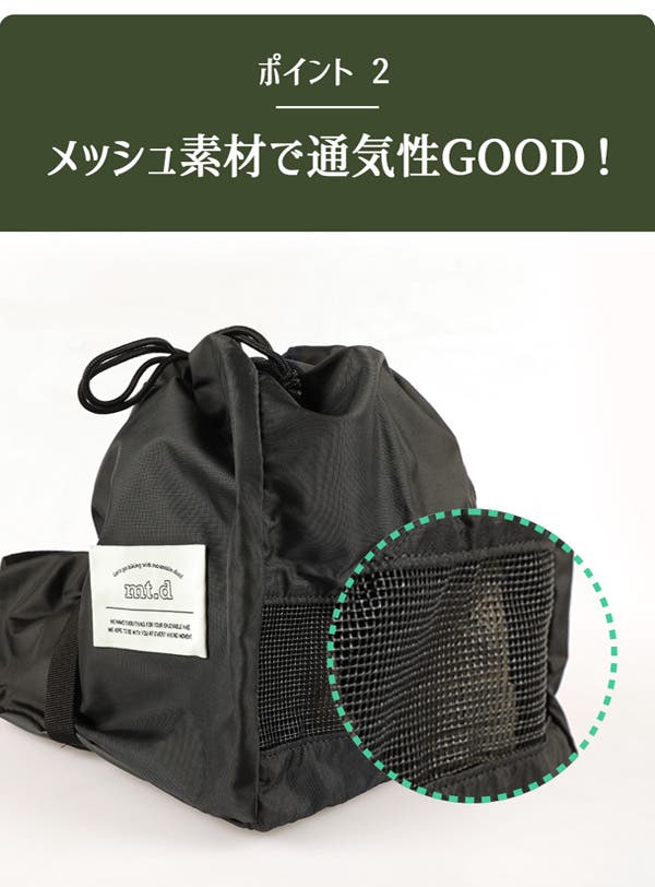 登山靴ポーチの裏面はメッシュ素材で構成されており、熱気を追い出すことができます!