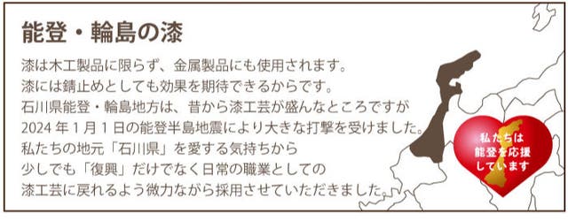 地元能登の「漆」を施した「鉄」素材の物からお選びいただけます。