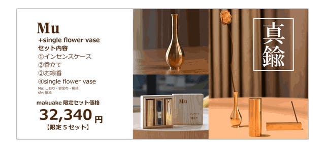 「Makuake(マクアケ)」は、実行者の想いを応援購入によって実現するアタラシイものやサービスのプラットフォームです。このページは、 プロダクトカテゴリの 「「Mu」 ~金属精密加工技術で作る、インセンスケース・香立て・お線香のセット~」プロジェクト詳細ページです。