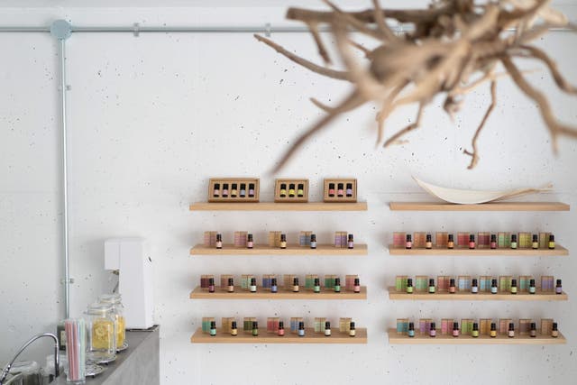 店内には木、花、果実などから抽出された天然のアロマオイルを約40種、そしてRICCA.調香師によるブレンドをベースとしたアロマ雑貨を取り揃えております。