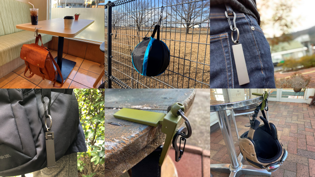 スマホスタンド、タブレットスタンドはもちろん、バッグ、ジャケット、マフラー、手袋、帽子、ヘルメット、タオル、水筒、弁当、買い物袋、エコバッグ、など。