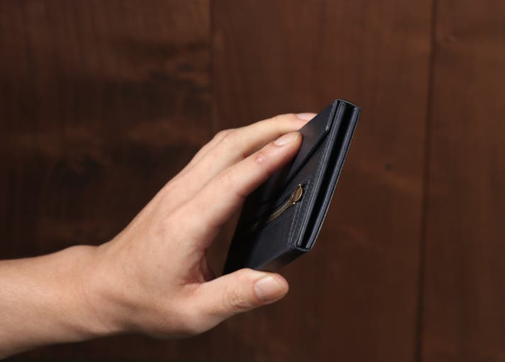 ・「スマホを持つ感覚で持てる長財布」を目指して小ささはもちろん、薄さも追及。