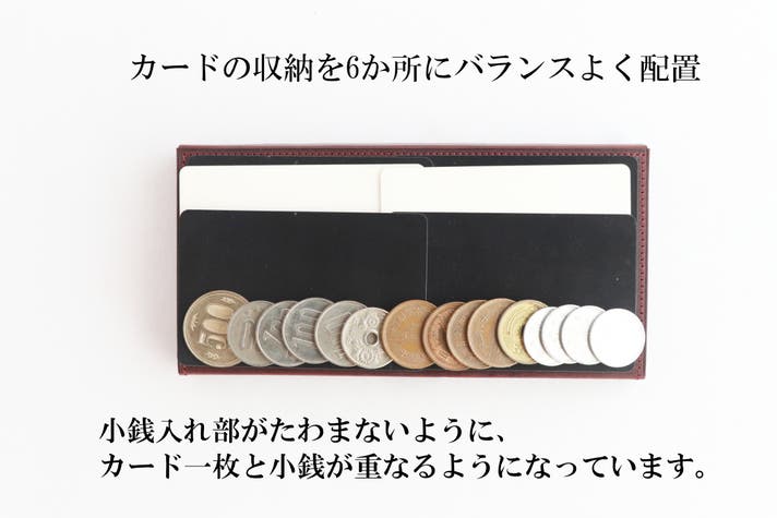・小さくても使い易い財布を実現する為のカード段と小銭入れの配置。