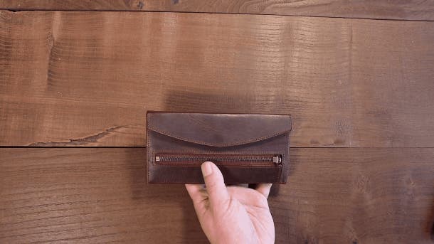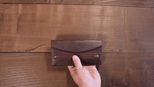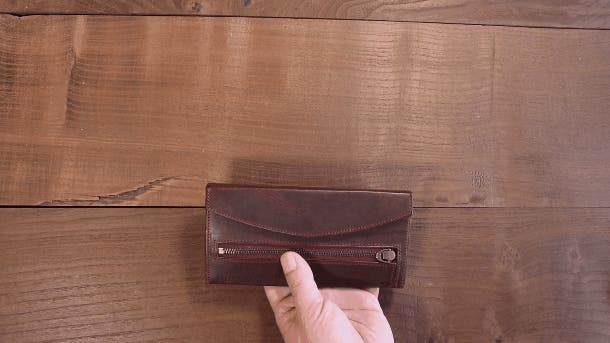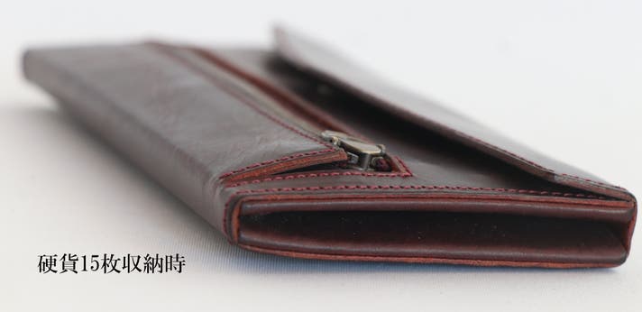 この形状の小銭入れの弱点として、マチがない方(左側)奥に小銭が挟まり取り出しにくいことがあります。もし挟まったら、小銭入れの上部を広げて傾けてください。スルっと中央部に移動してくれます。