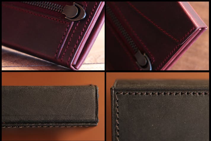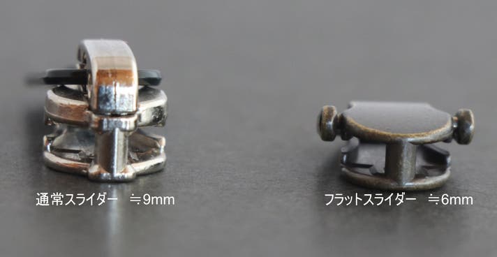 小銭入れのファスナーはYKKの上位シリーズのエクセラ、スライダーは財布用に開発されたフラットスライダー。スライダー自体の厚さを軽減しています。ファスナーのエレメントカラーは革の質感に合わせたものを使っています。