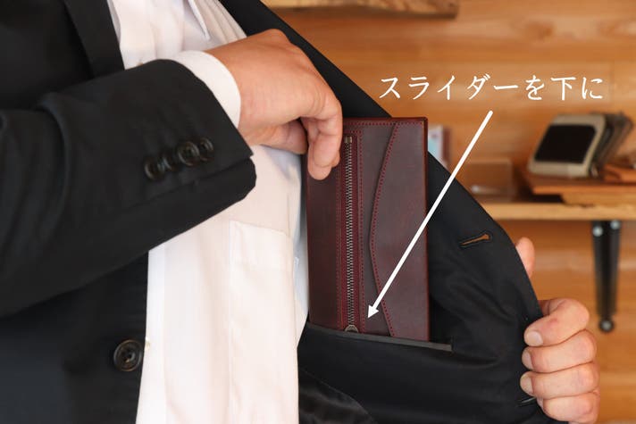 お札の高さギリギリに設計していますので、お財布を閉める際はお札の上部がはみ出していないことをご確認ください。