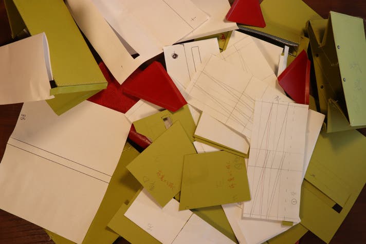 3点の条件を満たした型紙制作は難航しました。ファーストサンプルまでどれだけ型紙を作り直したか数えきれないほどです。