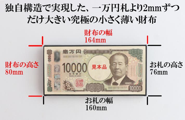 ・一万円札(縦76mm 横160mm)内寸がこの寸法にどれだけ近付けられるか。