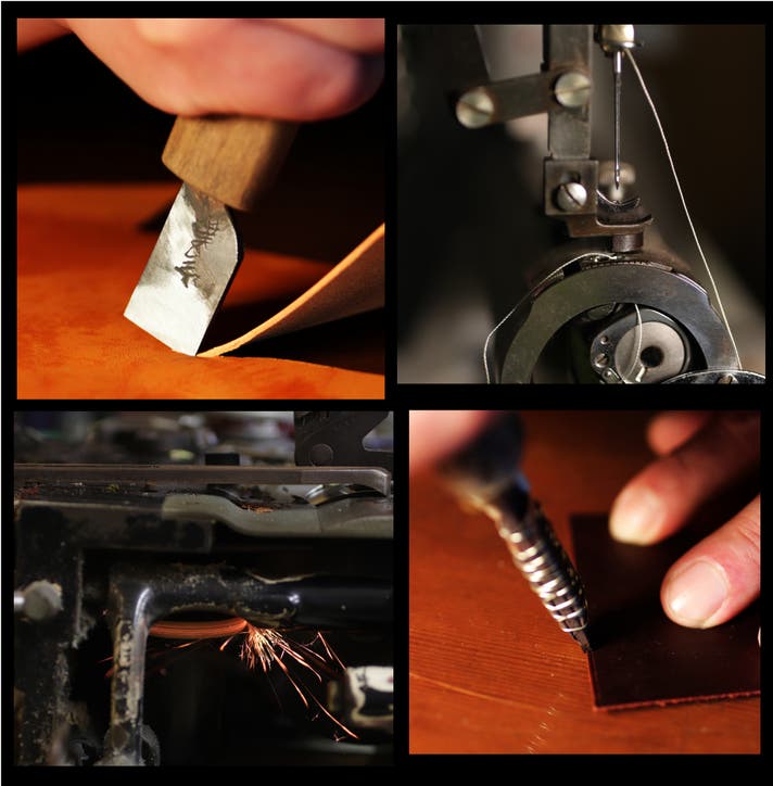 一旦ドメスティックブランドの店舗で職人として働き始めました。そこでも取引のあるいくつかのメーカーを見学させていただき、一人の親方と出会いました。圧倒的な技術力で当時素人の私から見ても一線を画すレベルの仕事でした。後日知ったことですが、その親方は業界内では有名な方で、日本でトップレベルの創業100年以上続くメーカーの社長でした。親方に仕事を見せて欲しいとお願いし、自分が休みの日は必ずその工房へお邪魔し、少しずつ工房にて制作をさせていただくようになりました。その後、弟子入りという形で工房の一角をお借りし、日々の制作を行いました。弟子入りですのでもちろん無給です。当時は下請けメーカーとして問屋さんから仕事をもらい、親方の仕事を目で見て盗みながら技術を吸収し、一人前の職人に育ててもらいました。