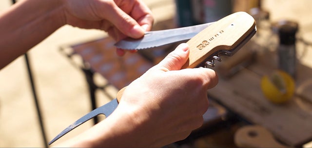 お肉を調理するための調理器具+ワインオープナーが1つになった、コンパクトで持ち運びもしやすい、