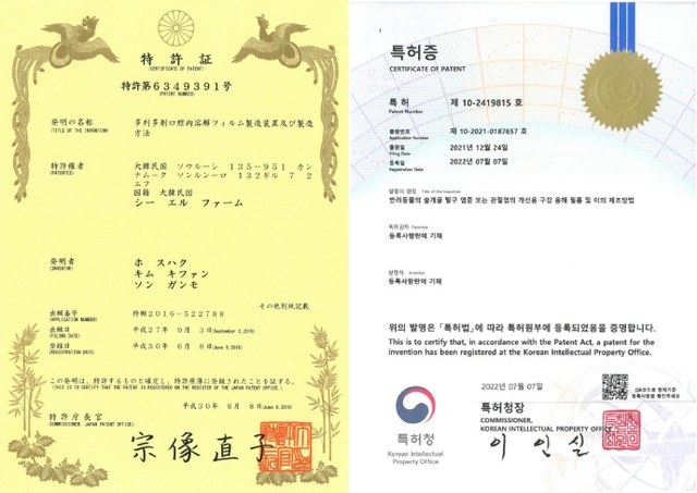数十年間ODFフィルムを開発しながら既存の製造方式ではなく定量の栄養成分が正確に給与されるように、まるで3Dプリンターで製品を作るようにプリンティングする技術を世界で初めて導入し、一枚一枚正確な容量を給与できる技術を開発するに至りました。