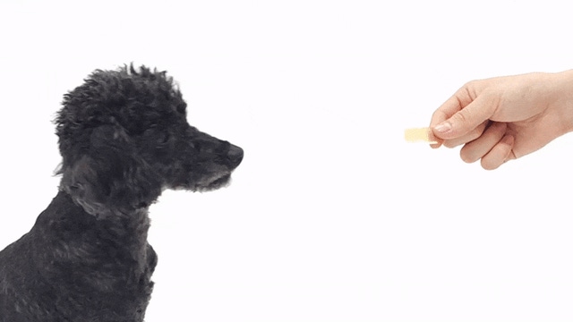 小型犬やおやつをよく食べない犬には半分に分けて少しずつ食べさせてから、徐々に量を増やして定量に支給してください。