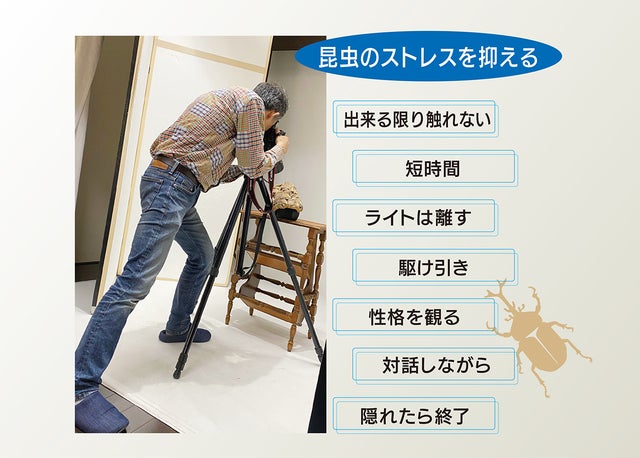 このような昆虫撮影のポイントを自身で決め、昆虫に敬意を払い行なっています。